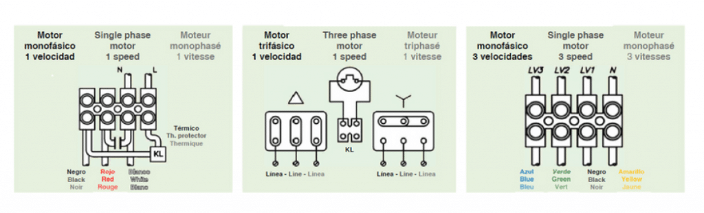 - L’arbre du moteur est directement fixé à la turbine à l’aide d’un moyeu de fixation. Le moteur, de type fermé (IP54), est disponible en version monophasée ou triphasée, avec 4 ou 6 pôles. Il intègre une sonde thermostatique et une isolation de classe F.
