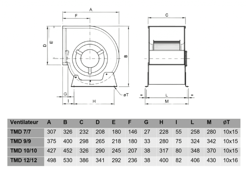 - Le groupe TMD est composé de ventilateurs centrifuges à double ouïe et basse pression, fabriqués en tôle d’acier galvanisé. Il appartient à la série légère du TDA. Sa turbine à action, dotée d’aubes insérées, lui confère une grande rigidité ainsi qu’un rendement optimal.
